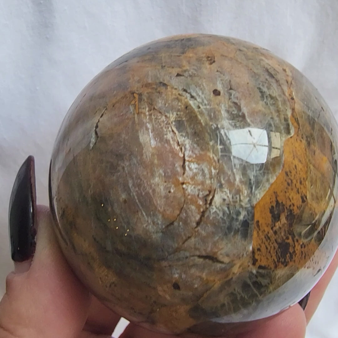 Black Moonstone Sphere with Golden Healer Inclusions